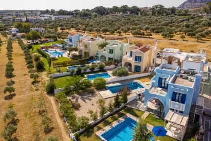 12 ISLANDS е луксозен вилен комплекс с 12 вили (с имена и архитектурни характеристики, вдъхновени от комплекса от 12 острова, на който Родос е столица) с s-частен басейн, изглед към морето и провинцията, на минути от плажа, ресторанти, голф и удобства . Идеален за семейни и групови почивки. Всички жилищни и спални помещения също споделят това, което несъмнено е основната характеристика за продажба и това са гледките! Повишената позиция предлага панорамна гледка към Егейско море и живописния пейзаж на Родос.
