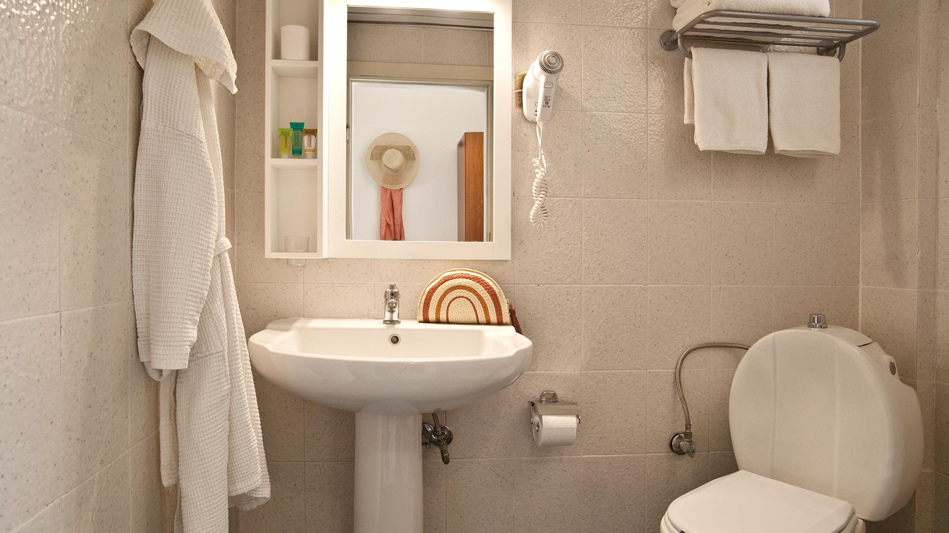 В стаите: климатик, самостоятелен санитарен възел, безплатен Wi-Fi интернет, сателитна телевизия, хладилник, гледка към морето или градината.