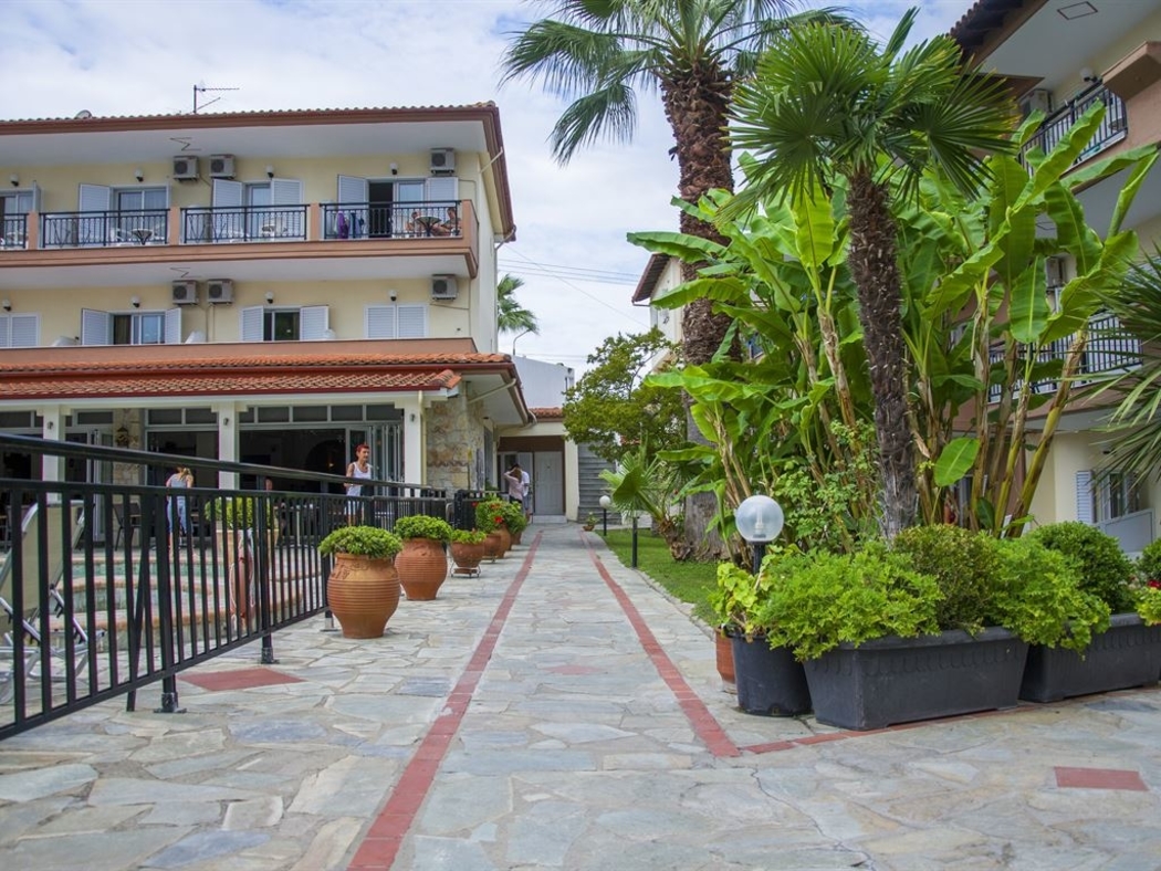 Местоположение: "Sarantis" се намира в селището Ханиоти, на първия ръкав на Халкидики - Касандра. Разположен е на площ от две хиляди квадратни метра, само на 300 м от плажа и на 150 м от центъра на Ханиоти.