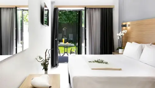 Всички стаи на Atlas Hotel Skiathos са напълно реновирани по високи стандарти и много модерни. Разполагат с: двойни легла, телевизор с плосък екран, климатик, WiFi, баня с душ, минибар, сешоар, електронен сейф. Повечето стаи предлагат балкон с изглед към градината на хотела или улица Пападиаманти.