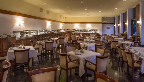 Основният ресторант предлага американска или гръцка закуска, както и гръцка и международна кухня. Ресторант White View Grill предлага местни ястия и морски дарове в прекрасна градина на покрива с изглед към морето. Три бара, в лобито, на басейна и на плажа, предлагат напитки и екзотични коктейли.