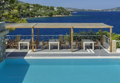 Cape Kanapitsa Hotel & Suites of Skiathos беше наскоро напълно реновиран и е удобно разположен на нос Kanapitsa, между плажовете Kanapitsa и Tzaneria, с изглед към кристално сините води на Егейско море и град Скиатос. Cape Kanapitsa Hotel & Suites предлага модерни, луксозни стаи, луксозни стаи, супериорни луксозни стаи, апартаменти и апартаментни апартаменти с изглед към Егейско море и град Скиатос. Всички стаи разполагат с модерно обзавеждане, страхотен изглед към морето, БЕЗПЛАТЕН WI-FI (LAN, където е наличен) Интернет достъп, сателитна телевизия, сейф, телефон с директно избиране, климатик. Гостите на Cape Kanapitsa Hotel & Suites могат да се насладят на топлото слънце около басейна до Blue Bar. Моля, обърнете внимание, че хотелът разполага с HOT-SPOT зони за гости, които желаят да се свържат с интернет чрез WI-FI мрежата.