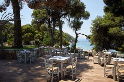 На красивия остров Споради, в защитен рай, творение на природата, 5-звезден хотел допълва хармонично пейзажа и предлага несравними услуги във вдъхновени съоръжения. ELIVI SKIATHOS, разположен на мястото, където някога е била старата Xenia (хотели, някога известни с избраното от тях местоположение и архитектурното си съвършенство), се радва на славата от миналото и се превръща в 5-звезден хотел в Скиатос, изумрудения остров на Спорадите, с буйната си растителност и отражение към тюркоазените води, с уважение към историята и естествената среда.