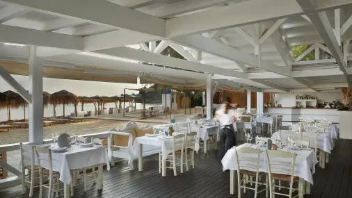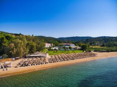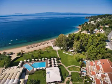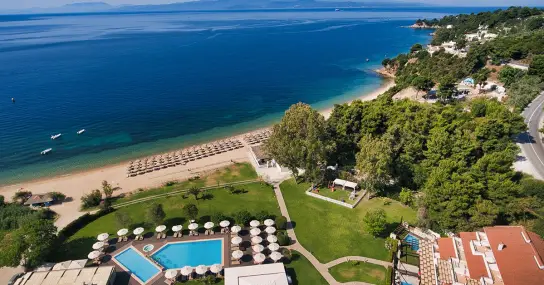Всичко, което бихте очаквали от Скиатос, водещ 5* Family Friendly Resort. Princess Resort, Skiathos е посветен на насладата на сетивата на всеки гост, независимо дали пътувате със семейството си, за да се отпуснете, на романтичен меден месец или туристи, търсещи луксозен морски курорт. Избягайте в изискано убежище на гръцки остров с колекция от индивидуално проектирани стаи и апартаменти, разположени сред буйни градини на залива Агия Параскеви с разнообразие от заведения за хранене, спа център и отлични съоръжения за забавление и релакс. Beach Lifestyle с кристално чисти води е само на няколко крачки, с набор от водни спортове и ветроходни лодки под наем. Има истинско усещане да избягате от всичко това в комфортни стаи със самостоятелни балкони с изглед към морето или градините. Отпуснете се и се отпуснете на плажа с освежаващ коктейл, преди лек обяд с прясна риба и морски деликатеси в Pr. Ресторант Ammos Beach. Отпийте аперитив край басейна и се насладете на разнообразие от еклектични местни и интернационални ястия, приготвени пред вас.