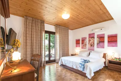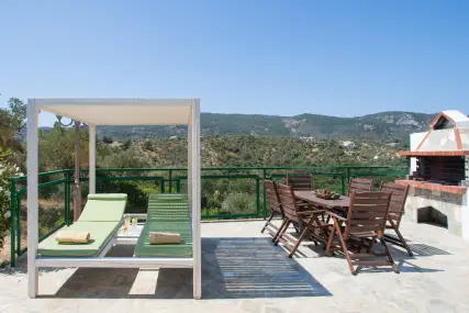 Four Seasons Villas is located in Skiathos overlooking the mountains, a lush garden, and a separate pool. There are the paths leading to Megalo Gialos Skiathos. Guests will enjoy private parking, garden, and cocktails in front of the private pool. There is a BBQ area in every villa. Each villa is autonomous, guarantees privacy, security, and tranquility. Each villa fully equipped with a heating and cooling system, an air-conditioning system, a fireplace.
