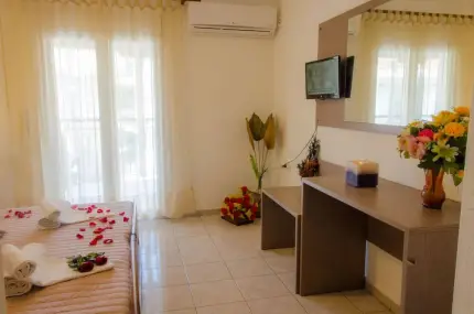 Polykratis Rooms is conveniently located in the popular Skiathos Town area. The hotel offers a high standard of service and amenities to suit the individual needs of all travelers. Facilities like luggage storage, airport transfer, family room, car hire, restaurant are readily available for you to enjoy. Guestrooms are fitted with all the amenities you need for a good night's sleep. In some of the rooms, guests can find whirlpool bathtub, air conditioning, balcony/terrace, television, television LCD/plasma screen. Entertain the hotel's recreational facilities, including garden. Polykratis Rooms is an excellent choice from which to explore Skiathos Island or to simply relax and rejuvenate.