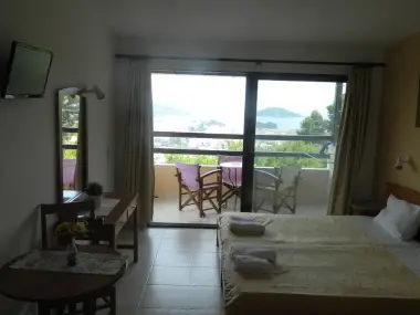 Located on a hillside in Agios Fanourios area, 1 km from Megali Ammos Beach of Skiathos, Asteri Studios is surrounded by a garden with a stone-paved sun terrace. It offers self-catering accommodation with furnished balconies overlooking the Aegean Sea, the garden or the surroundings.Featuring tiled floors and warm colours, all air-conditioned apartments and studios of Asteri have a kitchenette with a fridge and kitchenware. Â Each includes a private bathroom with a shower, and a flat-screen TV.Within 800 metres, guests can reach the centre of Skiathos Town where they will find restaurants and traditional taverns. Skiathos Port lies within 2 km. Staff at Asteri Studios can arrange for bicycle and car rentals. Free private parking is also available on site.