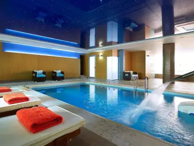- Вътрешен плувен басейн с хидромасаж (100 см дълбочина) )