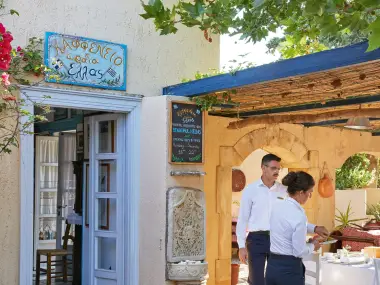 Fragrant gardens lapped by azure waters and palm-fringed lagoons swirling past natural stone terraces are the hallmarks of this relaxing yet sophisticated beachfront resort that offers the highest standards of Mediterranean luxury and refinement. Styled after the sprawling palaces of the Minoan kings and Venetian nobles who once ruled Crete, Creta Palace introduces guests to the easy elegance of true European luxe including olive trees, tropical palms, brilliant blue skies and sparkling teal waters.