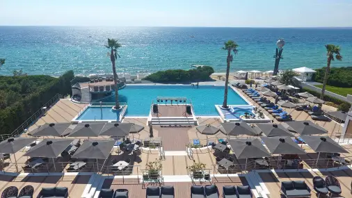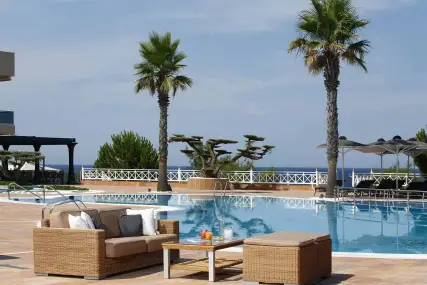 Xотелът е разположен на плажа до курортно селище Неа Потидеа на ръкава Касандра.