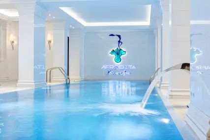 Pomegranate Wellness Spa Hotel разполага с един от най-добрите СПА центрове в Гърция. СПА центърът се състои от 1 700 квадратни метра и включва плувни басейни, сауни, масажни кабинети, салони за красота, медицински кабинети и фитнес център. Дизайнът на спа центъра е уникален благодарение на участието на някои от най-талантливите дизайнери и архитекти. Стените, подовете и таваните са направени от мрамор и камък. СПА центърът е умело разделен на различни зони, а кърпите, халатите за баня, чехлите и всичко необходимо е предвидено за гостите.