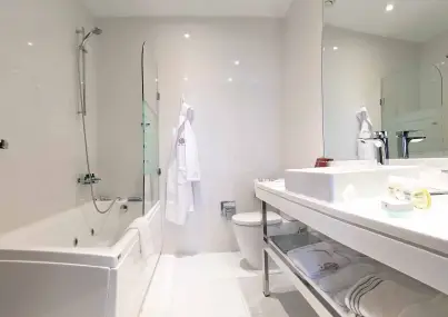 - Ludovicus Suite - (77 кв.м.) Луксозен апартамент с хол и отделна спалня с възможност за комбиниране, съблекалня и мраморна баня с джакузи с изглед към градината;