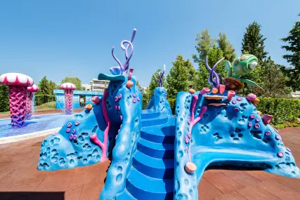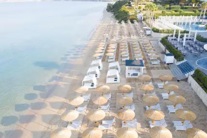 Плаж - собствен, пясъчен. Чадъри и шезлонги на плажа и при басейна – безплатно. Плажни кърпи - срещу депозит.