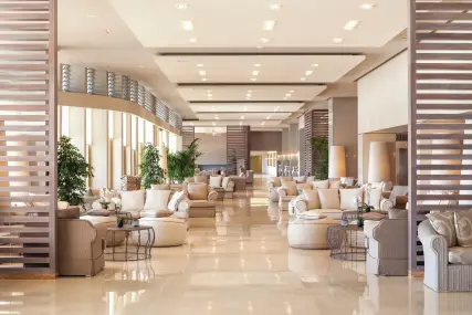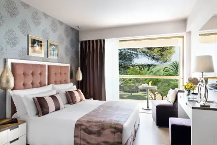 Хотелът разполага само с 392 стаи, които предлагат панорамна гледка към Егейско море, екзотични градини и върха на планината Олимп.