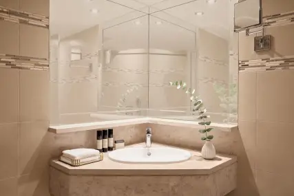 - Family Suite with two bedrooms and sea view - 75 кв.м, намиращ се в корпус Б; елегантна всекидневна, 2 спални, 2 бани.