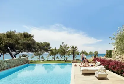 Sani Beach Club е част от луксозния комплекс Sani Resort, разположен на ръкав Касандра на п-в Халкидики.