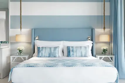 Всички стаи са реновирани и разполагат с индивидуален климатик, смарт телевизор, телефон, сет за кафе и чай, мини бар, сешоар, безплатен сейф, баня с вана и тропически душ, халати и чехли, балкон или тераса. Бутилка гръцко вино и плодове при пристигане..