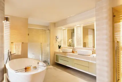 - Junior Suite Grand Balcony/SV - Намира се на втория етаж на двуетажно бунгало. Балкон с маса и два стола от ратан. Двойно легло или 2 единични легла, разтегателен диван.