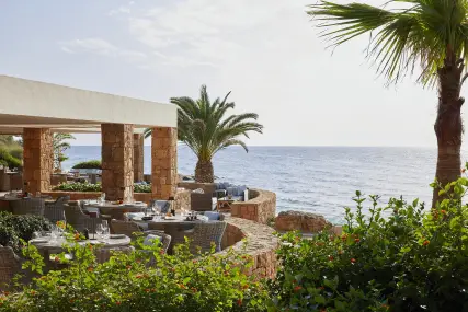 - The Veranda Restaurant е ресторант с гръцки и средиземноморски ястия за гости над 12 години. Шведска маса. Концепцията за "отворена кухня". Изглед към морето. Отворен за закуска от 8:00 до 11:00 часа и вечери от 19:00 до 22:00 часа.