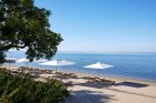 Чадъри, шезлонги на плажа: безплатно, кърпи на плажа: безплатно.