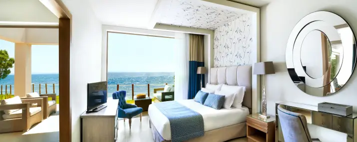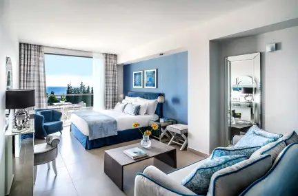 - Панорама джуниор сюит изглед море - 35 кв.м., максимална заетост 2-ма възрастни + 2 деца или 3-ма възрастни + 1 дете