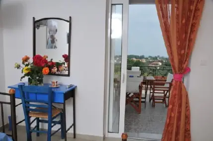 бар, сешоар и телевизор 32 inch LCD. Освен това всички те разполагат с удобни балкони, с изглед към морето. Комплекс Irene Studios се състои от шест студия с едно помещение и още шест с две помещения, които могат да приютят до 42 души. Всички студия разполагат с напълно оборудвана кухня, климатик, телевизор и го-