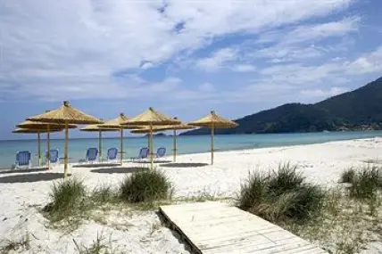Петзвездният луксозен бутиков хотел е разположен в края на Golden Beach, един от най-известните плажове на остров Тасос, на разстояние 2,5 км от село Скала Потамиас, и 4,5 км от традиционното планинско село Панагиа.