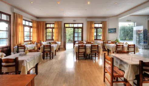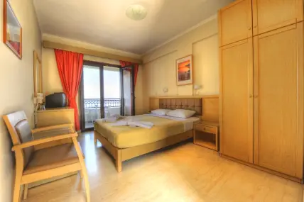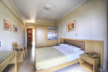 Хотелът разполага със стаи с две, три и четири легла и предлага на своите гости открит басейн, ресторант с традиционна гръцка кухня и бар.