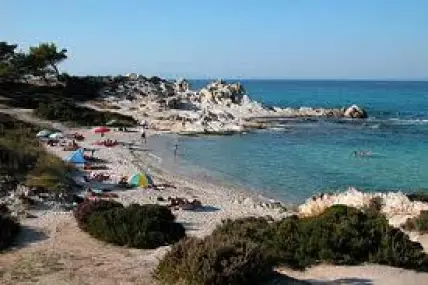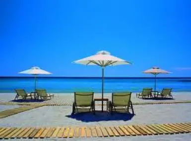 пясъчно-чакълест на 150 м от хотела. Шезлонги и чадъри на плажа срещу заплащане.