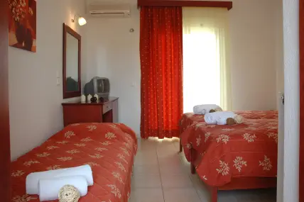 Студията са двойни, тройни, с четири и с двуетажни легла, идеални за семейства. Всички студиа са с напълно оборудвана кухня, хладилник, телевизор и тераса с панорамна гледка към залива Торонеос.