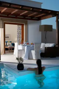 Всяка Junior Suite разполага с джакузи на открито, а всички сюити разполагат с личен басейн на открито, с езключение на Honey Suites и Family Suites, които имат джакузи на открито.