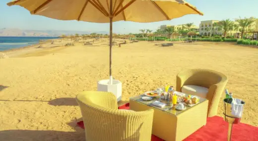 Живописното място на плажа, на което е разпложен хотелът е само на 20 километра от международното летище Крал Хюсеин. Хотелският комплекс Radisson Blu Tala Bay Resort е на 1 час с кола от древния град Петра.