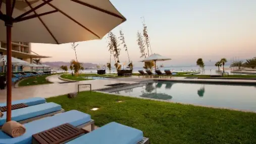 С изглед към Червено море,хотелът се намира на 5 минути пеша от магазини и забележителности и на 10 минути от Международното летище в Акаба.
