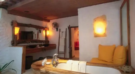 - 7 Crusoe Suite with Pool (264 кв.м.) - двуетажна вила с басейн. На партерния етаж: хол, баня с тераса с развлекателна зона, люлка и двор с басейн, шезлонги и достъп до плажа. На втория етаж: спалня с двойно легло king size, тоалетна. Максимално настаняване е 3 възрастни или 2 възрастни и 2 деца. Вилата е на страната на изгрева.