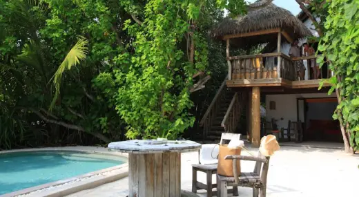 - 1 Two Bedroom Soneva Fushi Villa with Pool (395 кв.м.) - самостоятелна вила с басейн. Състои се от 2 спални с люта царска площ, 2 бани, съблекалня, тераси на най-горното ниво с люлки и зона за релакс, двор с плувен басейн, шезлонги и достъп до плажа. Максимално настаняване - 5 възрастни или 4 възрастни и 2 деца. Вилата е на страната на изгрева.