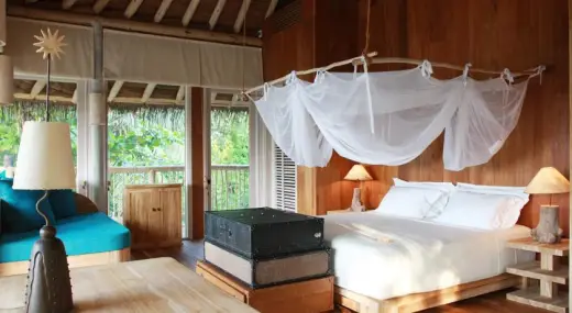 - 3 Two Bedroom Water Retreat with Slide (857 кв.м.) - водни вили с басейн. Състои се от 2 спални, 3 бани, 2 дневни, съблекалня, тераса с басейн, шезлонги, зона за отдих и водна пързалка. Максимално настаняване - 5 възрастни или 4 възрастни и 2 деца. Вилата е на страната на изгрева.
