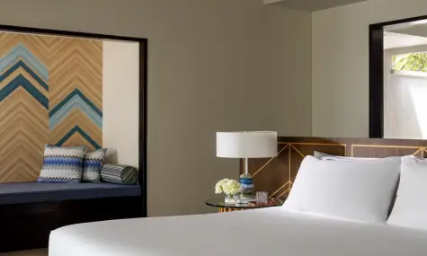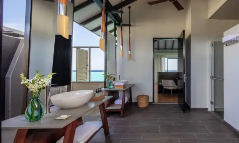 В стаята: спалня и хол, двойно легло king-size, бюро, стол, гардероб, трапезария в хола, мебели и душ на терасата, чадър, Wi-Fi, телефон, телевизор, IPTV, мултимедиен панел, климатик, таванен вентилатор, сейф, комплект за чай/кафе, бутилирана вода, мини бар. Ютия и дъска за гладене са на разположение при поискване (ако има такива). Банята е частично на открито, в него: свободно стояща вана, тропически душ, две черупки, тоалетна, сешоар, тоалетни принадлежности, кърпи, чехли. Почистване на стаята и смяна на кърпи - ежедневно, смяна на спално бельо - на всеки три дни.