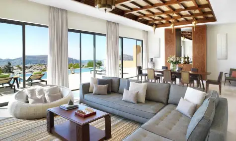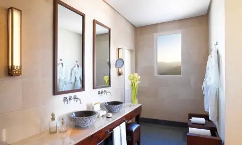 - Three Bedroom Royal Mountain Villa(~700 кв.м.) – гледка към планината. Тази двуетажна вила на ръба на скалата разполага с три спални (две с двойно легло king-size и една с две единични легла), голяма всекидневна, трапезария, стая за бавачка, три гардеробни, три бани с вана и душ тип „тропически дъжд“, тоалетна за гости, паркинг за два автомобила, голяма тераса с инфинити басейн, джакузи, външен душ, трапезария, кът за сядане и зашеметяваща панорамна гледка към каньона.Максимално настаняване: 9 възрастни.