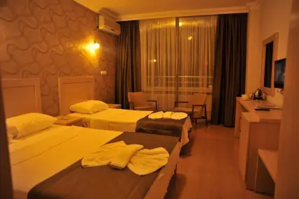 Хотелът е разположен е на 50м от плажа на Алтънкум, 800м от центъра на Дидим, 70км от летище Милас, Бодрум. Хотелът се състои от 2 сгради- първата е построена през 2002г, а втората- през 2007г. Последна цялостна реновация- 2012г.