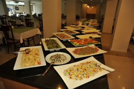 Разполага с сновен ресторант, 3 бара, 2 големи басейна, 1 детски басейн, тенис на маса, пералня, химическо чистене, водни спортове.