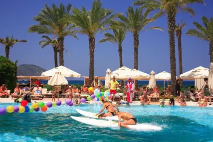 тенис на маса, билярд, дартс, баскетбол, плажен волейбол, аеробика, шах, мини футбол, водни ски, сърфинг, катамаран, кану, дискотека, кинозала, развлекателни програми.