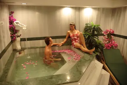 Oсновен ресторант; два a-la-carte ресторанта - италиански и рибен; четири бара; безжичен интернет в лобито; два плувни басейна; два детски басейна; басейн с водни пързалки; джакузи на открито; собствен пясъчен плаж с дървена платформа; кану; уиндсърф; водно колело; водна топка; фитнес център; четири тенис корта; баскетбол; плажен волейбол; миниголф; тенис на маса; билярд; стрелба с лък; аеробика; джогинг; степ; анимация; мини клуб; детска площадка.