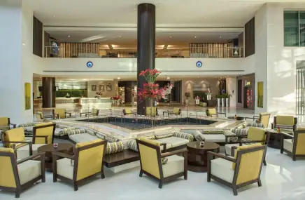 - Deluxe room sea view: Основна сграда, 53 кв. м, спалня, двойно легло king size или 2 единични легла, баня, душ и вана, балкон (при наличност), изглед към морето.